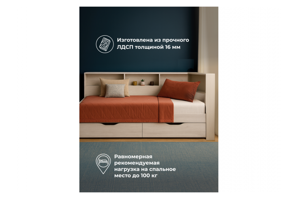 - Спальное место 90 x 190 см