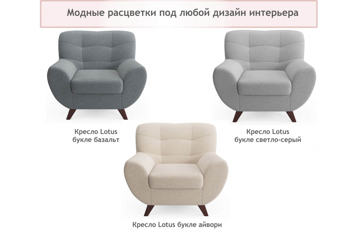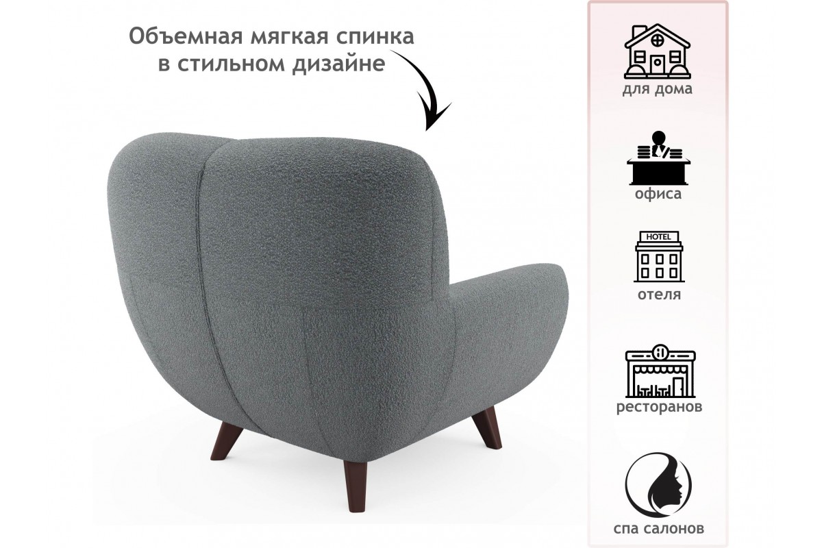 Дизайнерское мягкое кресло Lotus букле базальт, артикул 10500976