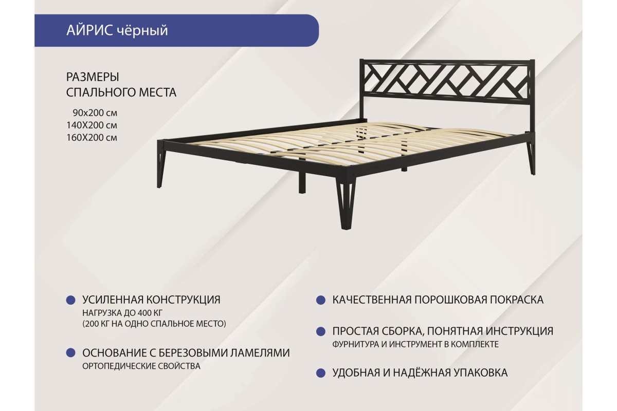 Кровать КМД 47 АЙРИС 1600, черный, артикул 10499225