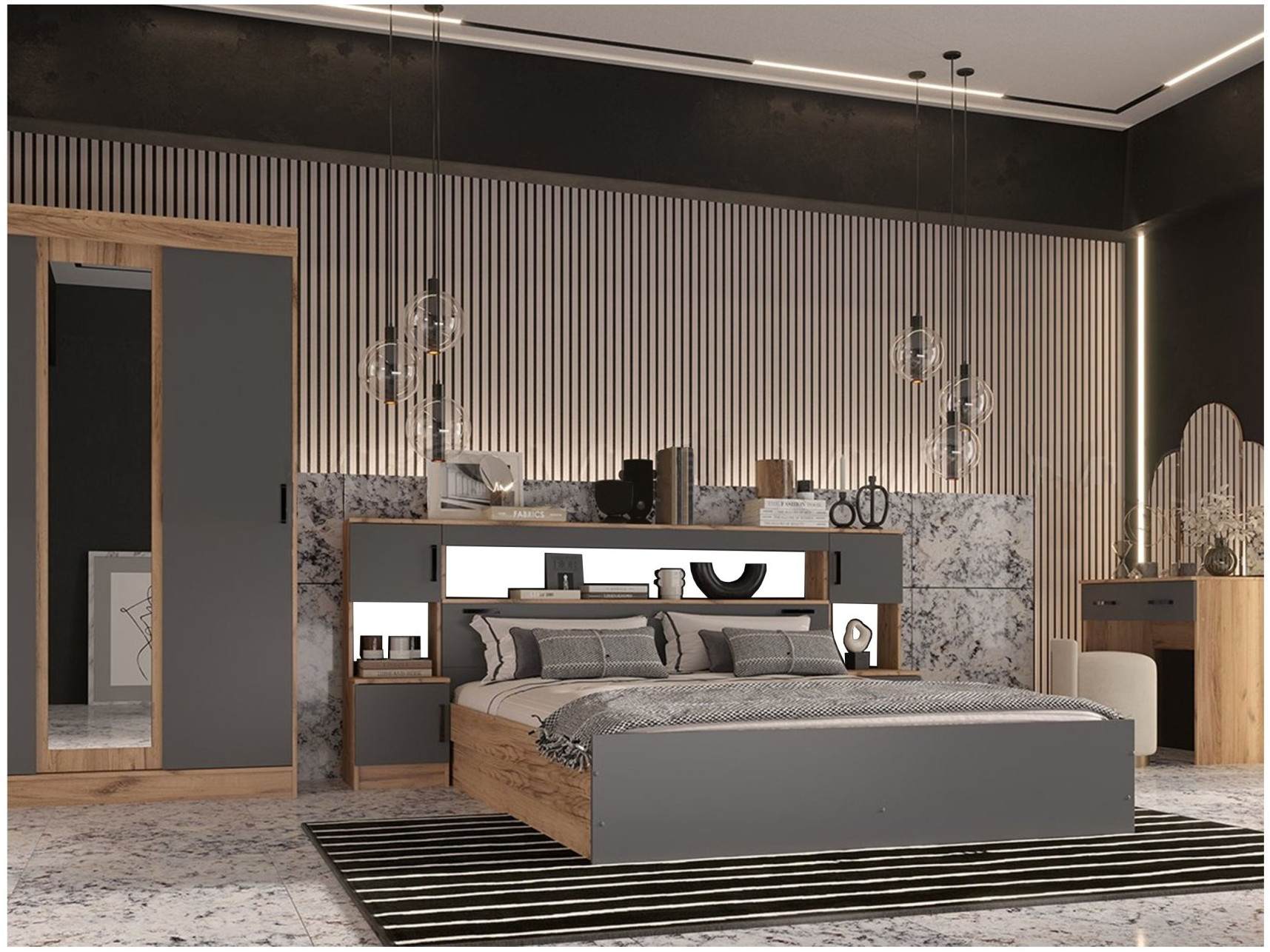 Модульная спальня , композиция 3 (Дуб крафт/ Графит), артикул 10301616