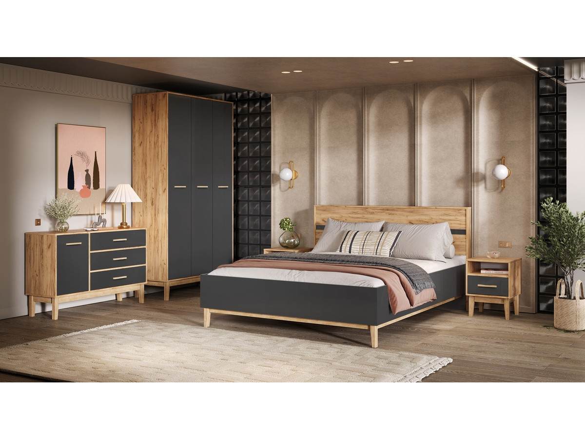 Модульная спальня Кельн, Крафт золотой/Графит, артикул 10501060