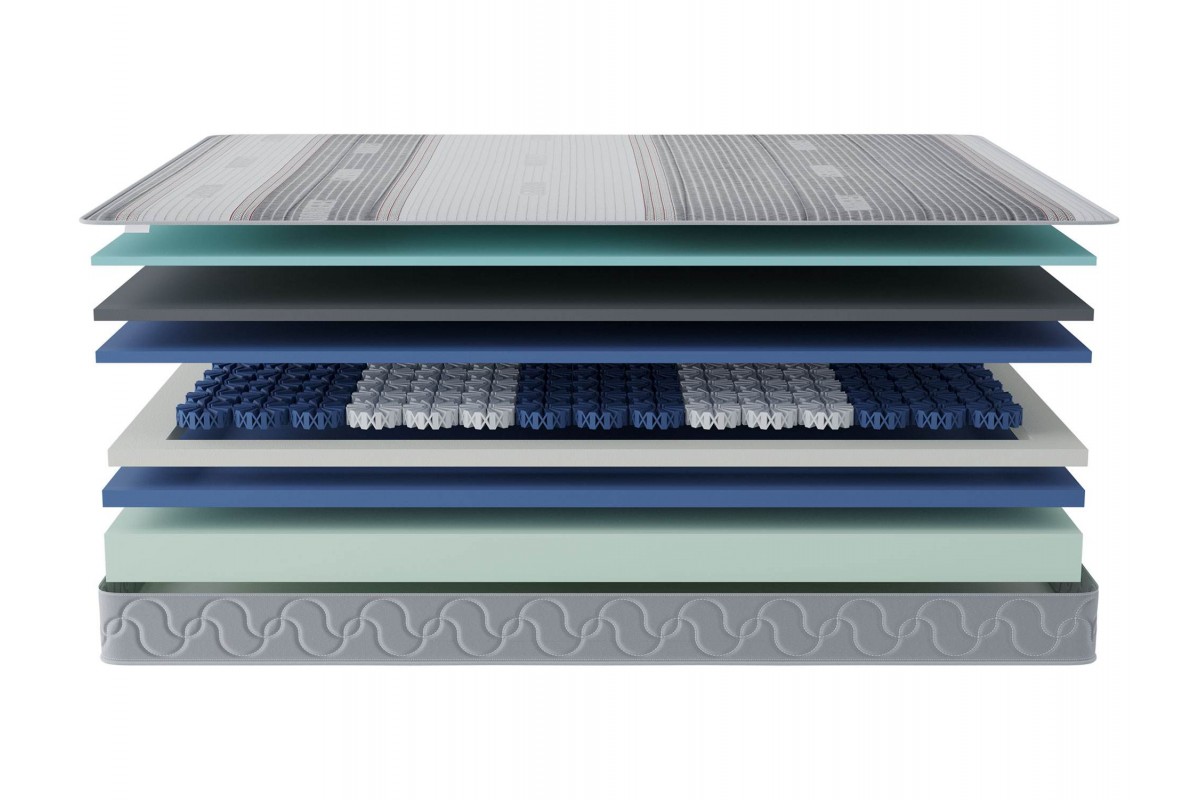 Пена мемори с угольной пропиткой 2 см / Пена средней жесткости 2 см / Пружины octaspring 3 см / Пена высокой жесткости 3 см / Пена средней жесткости 10 см / усиление периметра