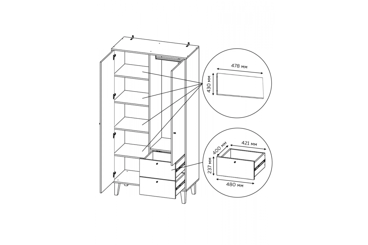 Шкаф СТОРИ Овалы 100, Белый, артикул 10407276